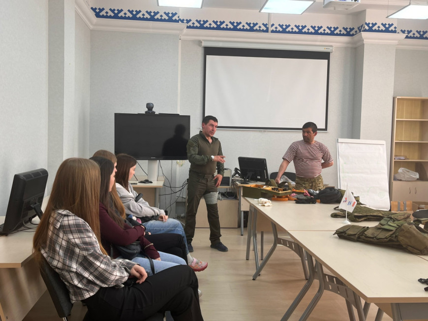 Ветераны ознакомили ребят с боевым обмундированием, основами и средствами тактической медицины, поделились личными историями, которые происходили с ними во время участия в боевых действиях.