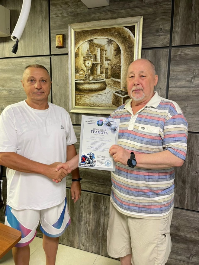 Виктор Донец выразил благодарность за военно-патриотическую работу и вручил грамоту от имени руководителя Приморского отделения «БОЕВОГО БРАТСТВА» Владимира Горбатюка, а также грамоту от депутата думы Владивостока, председателя Совета организации Виктора Тарабарина члену организации Сестрорецка Наталье Карпачевой.