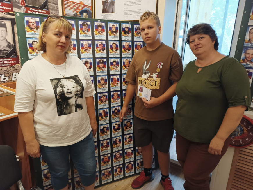 Павлу руководитель отделения Сергей Таужанов передал медаль, предназначенную отцу — «Участнику специальной военной операции».