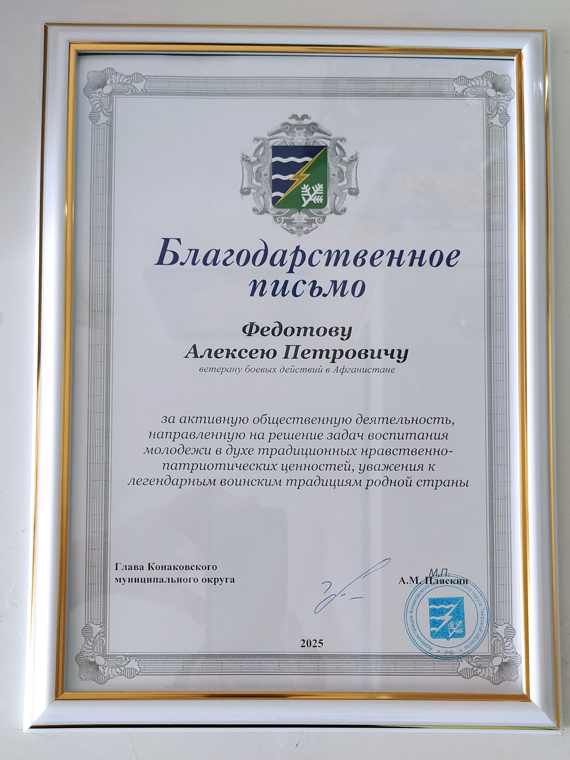 В конференции приняли участие представители власти и общественности, педагоги. При многочисленной педагогической аудитории благодарственное письмо за активную общественную деятельность, направленную на решение задач воспитания молодежи в духе традиционно-патриотических ценностей, уважения к воинским традициям родной страны вручено Алексею Федотову, ветерану боевых действий в Афганистане, руководителю Конаковского районного отделения «БОЕВОГО БРАТСТВА».