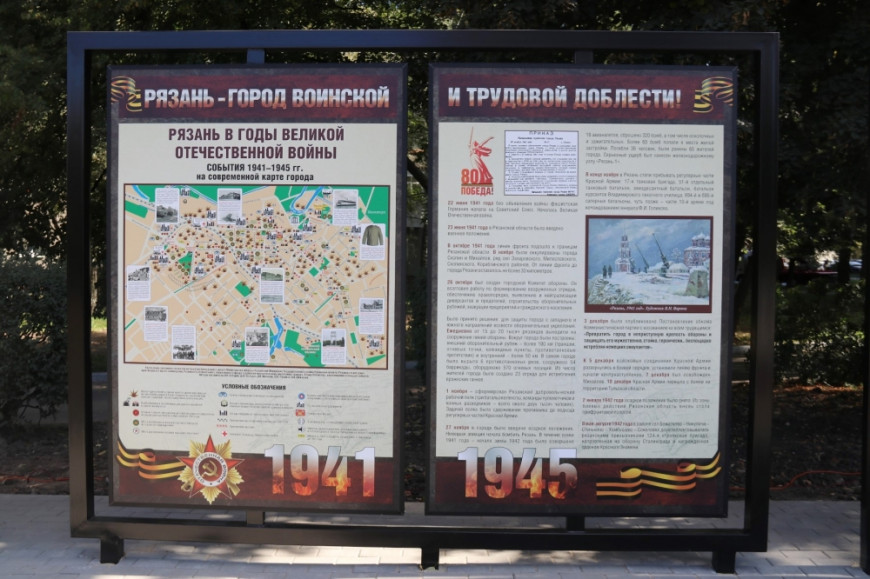 В рамках программы поддержки местных инициатив в сквере заменили покрытие пешеходных дорожек, установили лавочки, уличные фонари и провели озеленение. Также в сквере появилась стела «Доска почета» с архивными фотографиями, рассказывающими о Рязани и её жителях в годы Великой Отечественной войны.