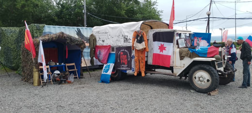 Развернули мобильную экспозицию ветераны Камчатского краевого отделения «БОЕВОГО БРАТСТВА» Андрей Моргиев и Сергей Волошин.