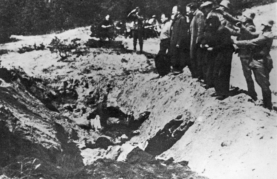 Приведенных на казнь евреев заставляли раздеться. Их ждали расстрельные команды из числа бойцов войск СС, зондеркоманды 4а и 45-го полицейского батальона. Людям приказывали лечь на землю, после чего стреляли им в затылок. Убивали всех, в том числе женщин и детей.
