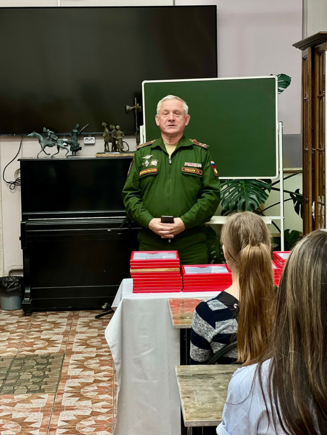 На открытие выставки был приглашён руководитель Краснодарского городского отделения «БОЕВОГО БРАТСТВА» Геннадий Романов, который поприветствовал участников конкурса и участвовал в церемонии награждения победителей. Геннадий Романов в рамках мероприятия обсудил с директором школы В. Присяжнюком и профессором В. Денисенко вопросы взаимодействия по патриотическому воспитанию молодёжи и увековечению памяти защитников Отечества посредством живописи.