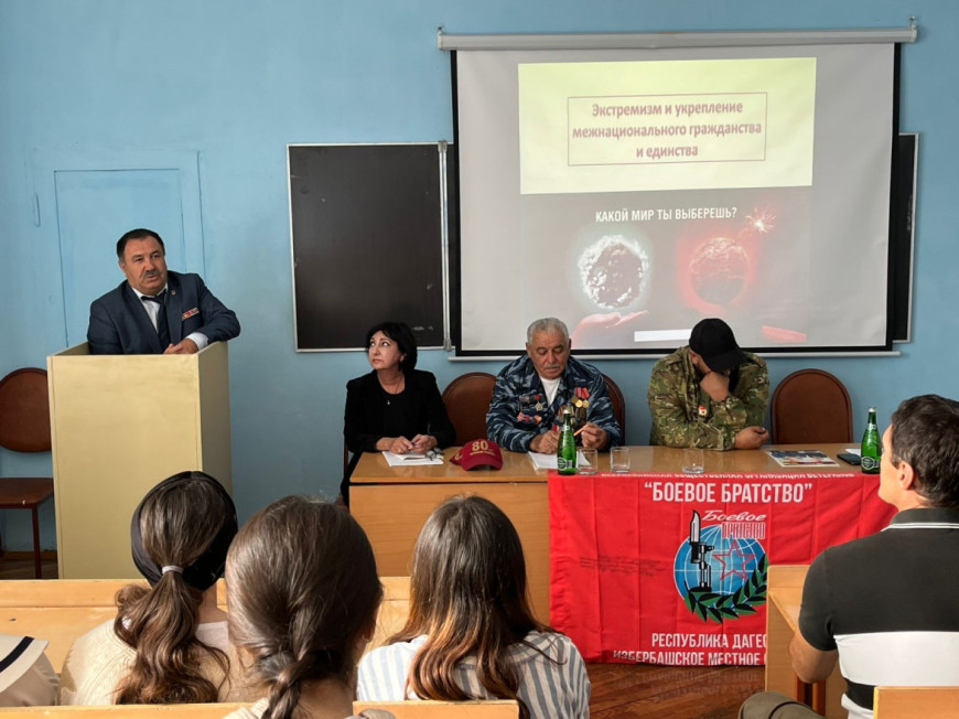 Мусашейх Салманов рассказал о роли ветеранских организаций в профилактике терроризма и обратил внимание ребят на актуальные вопросы, связанные с возросшей активностью экстремистских сил по вовлечению молодых людей в торговлю наркотиками, в террористические акты и протестные действия. Он подчеркнул, что на первый взгляд «невинные» поступки (например, использование экстремистской символики) могут привести к уголовной ответственности. Молодёжи важно не только уметь противостоять деструктивной пропаганде, но и активно присоединяться к волонтёрским проектам.