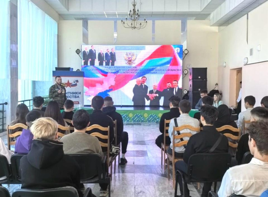 «Перед собравшимися студентами Баймакского филиала Уфимского топливно-энергетического колледжа выступил активист местного отделения «БОЕВОГО БРАТСТВА», участник СВО Шариф Ямантаев.