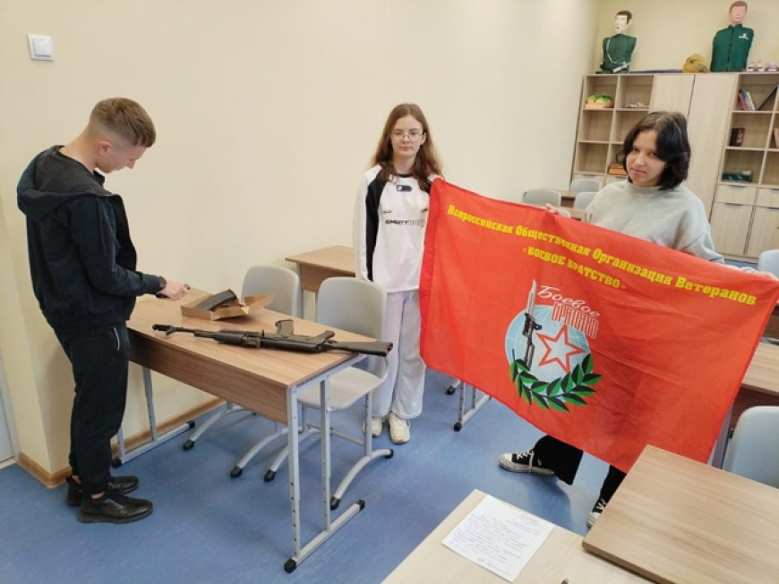Участники услышали о воинах Гдовского района, выполняющих боевые задачи в зоне СВО. На уроке прошли занятия по огневой подготовке, по изучению ТТХ автомата Калашникова.