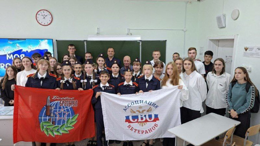 Так, ученики 10А класса и воспитанники кадетского класса Тисульской школы № 1 на территории поселка Тисульский встретились с ветеранами боевых действий и участниками СВО - представителями районного «БОЕВОГО БРАТСТВА» Иваном Богушем и Андреем Петровым, а также с руководителем отделения Сергеем Чучелановым.