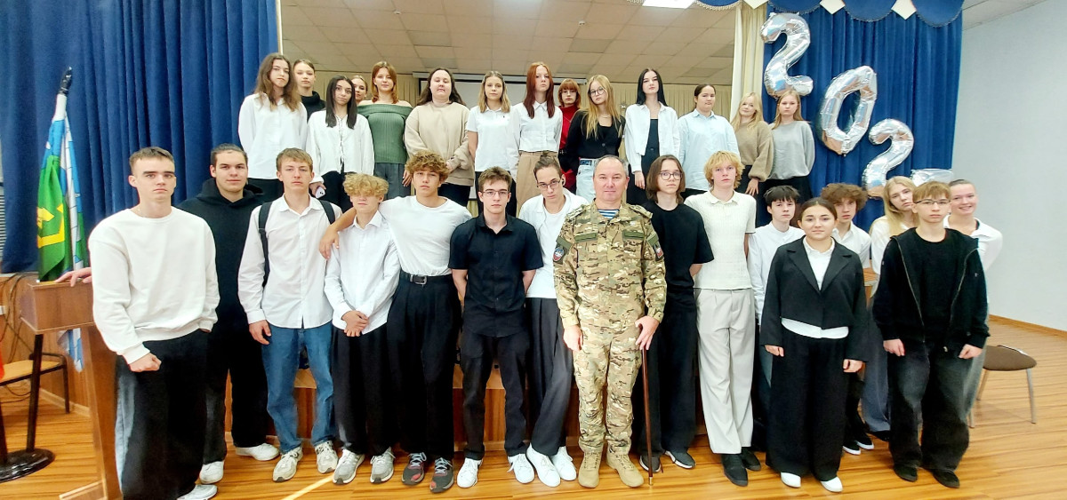 В честь памятной даты для учащихся 10 параллели школы № 2 в Сосновом Бору урок мужества провёл подполковник, участник Специальной военной операции, ветеран «БОЕВОГО БРАТСТВА» Сергей Петраков.