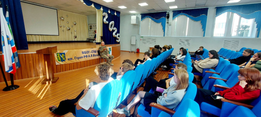 Ветеран рассказал, как стал военным, о годах службы, целях СВО, русском менталитете и силе духа, важности писем и рисунков, которые дети присылают нашим бойцам. Среди вопросов, которые задали старшеклассники, были такие: «Какими качествами должен обладать будущий военный?», «Для чего военным харизма?», «Что может сделать самое лучшее командир для своего подчинённого?».