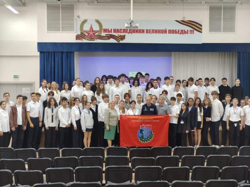 29 сентября в Краснодаре, в актовом зале школы №98 имени героя Российской Федерации генерала-полковника Г.Н. Трошева, прошёл урок мужества «Вопросы о главном».