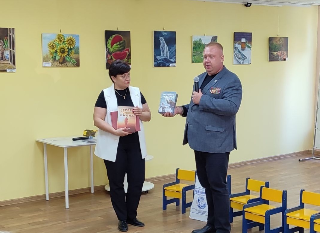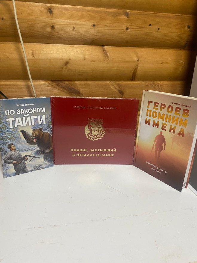 Также он подарил библиотеке три книги. Одна из них - «По законам тайги» Игоря Янькова, учредителя и основателя благотворительного фонда «Офицерская честь». Две другие - «Подвиг, застывший в металле и камне» и третий том «Героев помним имена. Кремлевцы в боях СВО» - изданы при поддержке Всероссийской организации ветеранов «БОЕВОЕ БРАТСТВО». Одним из авторов является руководитель Московского областного отделения Сергей Князев.
