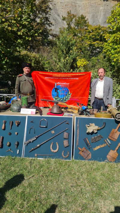 Члены Краснодарского городского отделения «БОЕВОГО БРАТСТВА» Владимир Маковецкий и Михаил Иванов и активисты «Волонтёрской роты» провели выставку «Защитники Кубани», на которой было представлено оружие и экипировка времен Великой Отечественной войны.