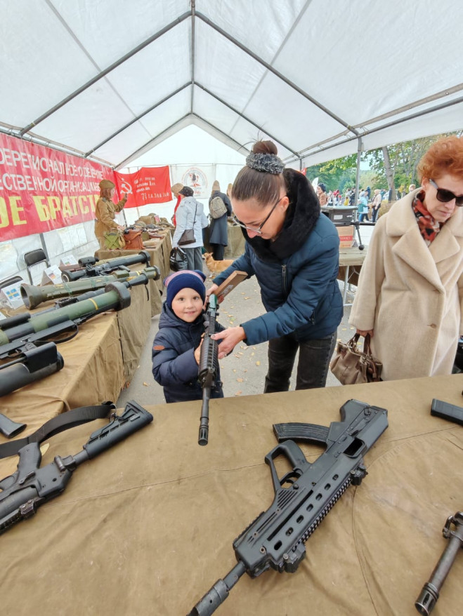 Члены ветеранской организации представили на фестивале выставку трофеев из зоны Специальной военной операции. За день работы фестиваля ее посетили более тысячи калининградцев и гостей города. Каждый посетитель получил представление о том, с чем приходится сталкиваться российским воинам на поле боя. На выставке работали члены организации Д. Мель, В. Пономарев, Е. Синькова.