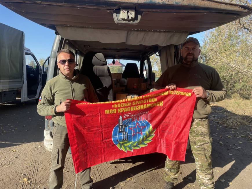 27 сентября представители Краснознаменского отделения «БОЕВОГО БРАТСТВА» Александр Исаев и Павел Горбовский совершив 645-й выезд отделения в зону проведения Специальной военной операции.