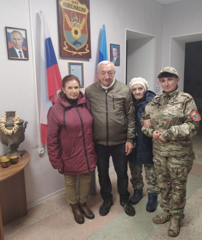 По пути навестили члена «БОЕВОГО БРАТСТВА», директора музея в поселке Новоайдар ЛНР Андрея Подройко. Для новоайдарцев члены ветеранской организации передали мёд. Андрей Подройко подарил гостям старинные прялки для музея.