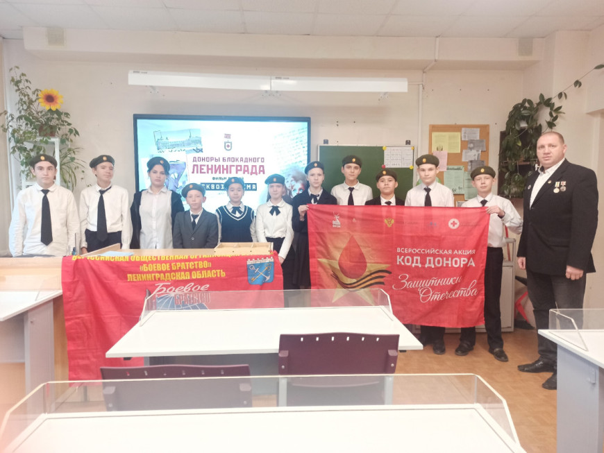 3 октября руководитель отделения «БОЕВОГО БРАТСТВА» в Мурине, Новом Девяткине и Буграх Михаил Петров провел урок мужества для кадетского класса в школе №152, посвящённый героизму в годы блокады.
