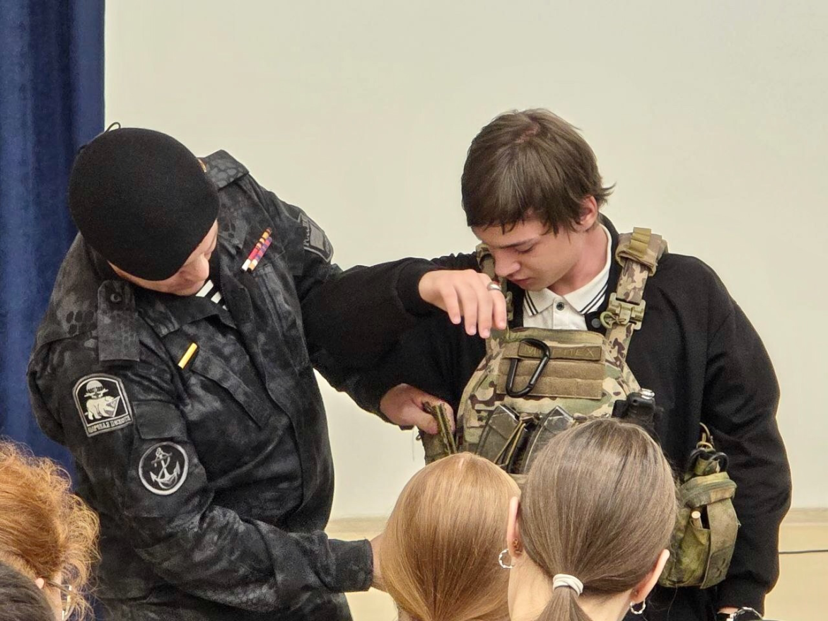 В ходе диалога ветеран поделился с ребятами историями о боевом братстве. Рассказал о важности поддержки товарищей в сложных ситуациях, о письмах от детей, об обмундировании и снаряжении, о том, что необходимо современному солдату для выполнения боевых задач.