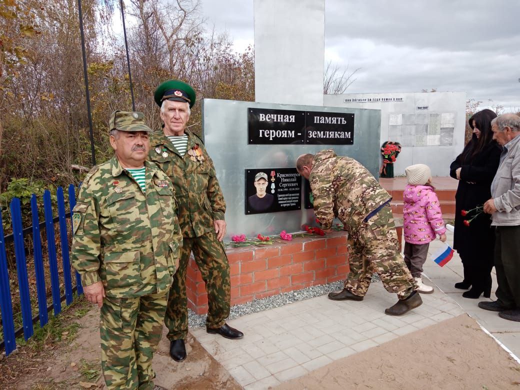 3 октября в селе Старая Чеколда Агрызского района ветераны “БОЕВОГО БРАТСТВА” Татарстана открыли стелу в честь погибших на СВО защитников Отечества Марата Хасанова и Николая Красноперова.