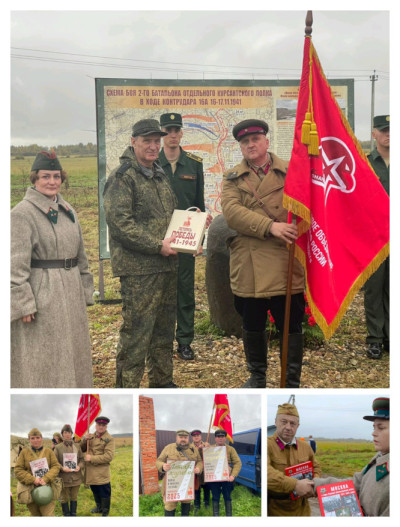 Юнармейцы также приготовили подарки для участников мероприятия. В рамках военно-патриотической акции они вручили книги участникам реконструкции боя личного состава Второго батальона отдельного курсантского полка в битве за Москву 16-17 ноября 1941 года.