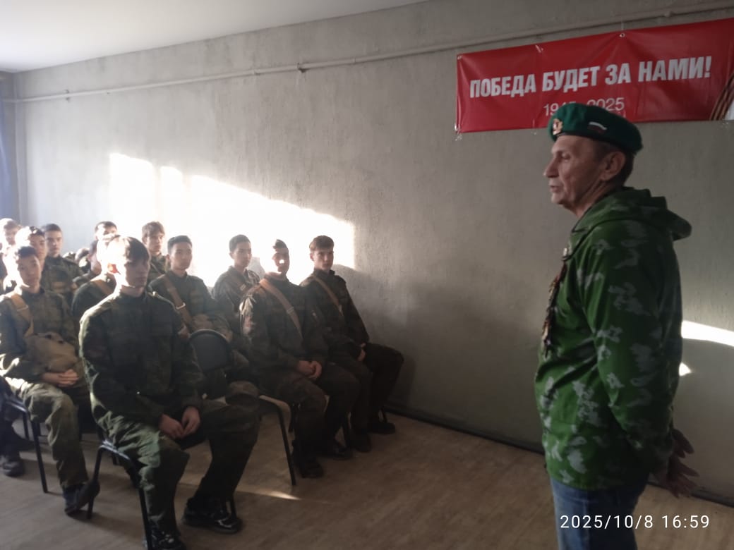 14 октября член правления Балаковского отделения “БОЕВОГО БРАТСТВА” имени Малярова, ветеран войны в Афганистане Дергунов Андрей провел патриотическое мероприятие с курсантами учебного центра «Авангард» в Балакове.