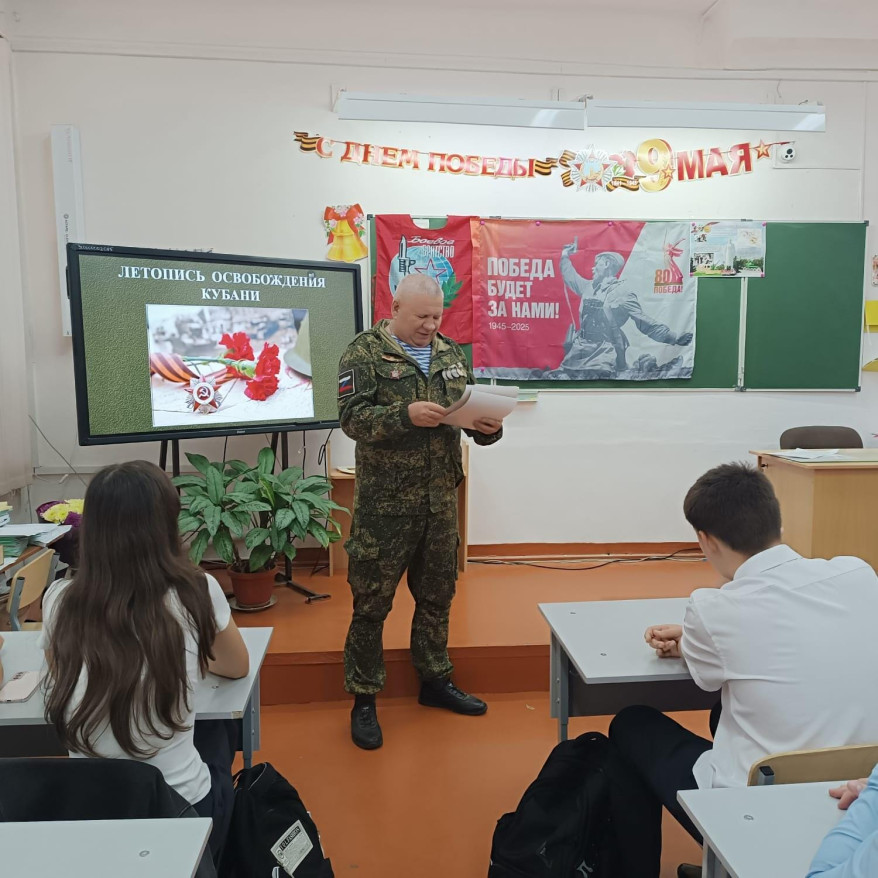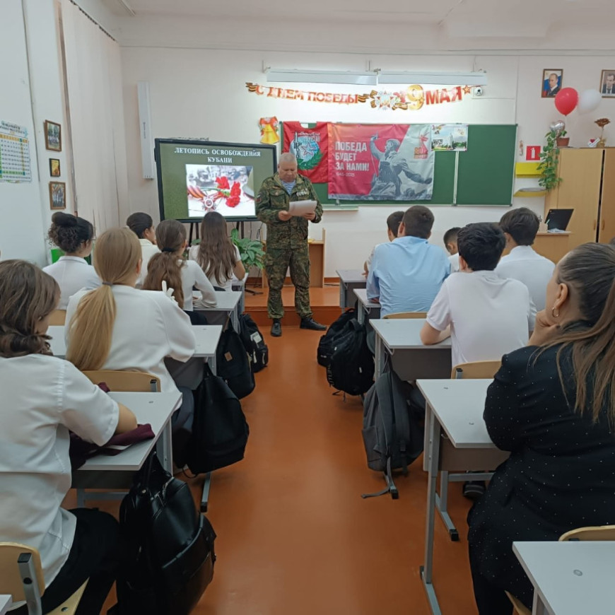 Провёл его для учеников 9Б класса руководитель местного отделения «БОЕВОГО БРАТСТВА» Станислав Климашевич. На примере реальных судеб земляков — партизан и подпольщиков — ученики узнали о несгибаемой воле белореченцев в борьбе с нацистами.