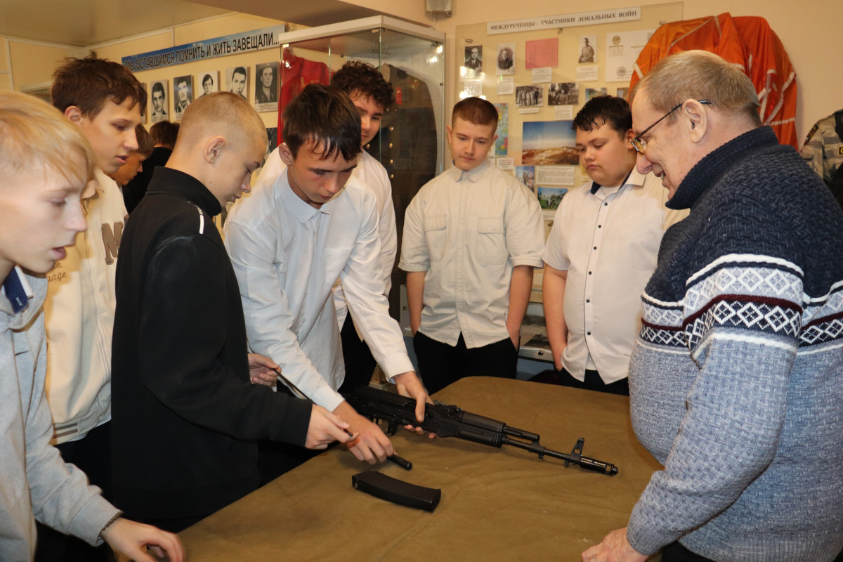 Ветераны рассказали ребятам об истории создания автомата Калашникова и его легендарном конструкторе – Михаиле Тимофеевиче Калашникове. Затем продемонстрировали, как правильно держать автомат, целиться и производить разборку и сборку. После инструктажа под руководством ветеранов учащиеся смогли проверить себя на меткость в лазерном тире.