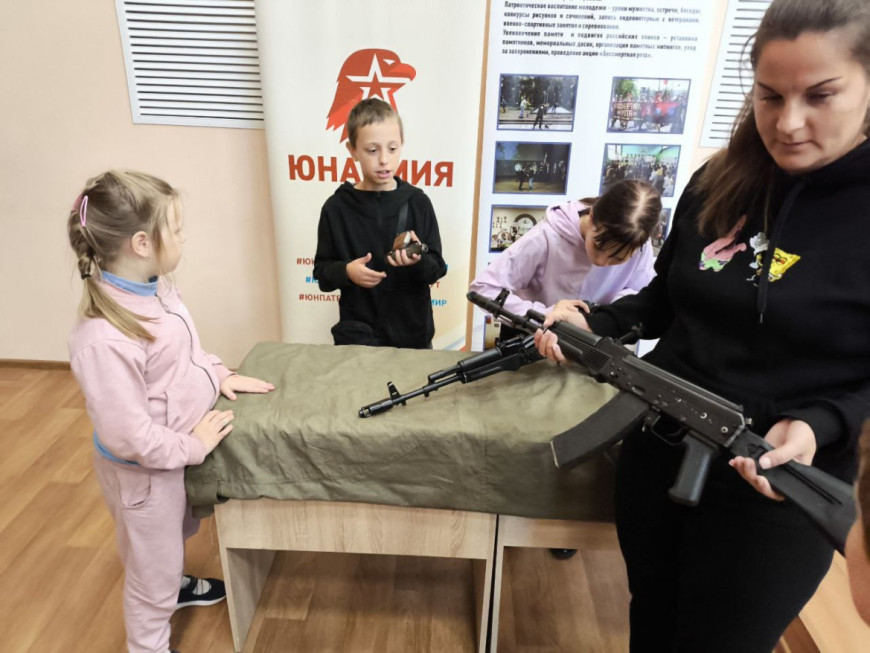 В зале расположена выставка артефактов Специальной военной операции. Ребята с интересом изучали предоставленные экспонаты.