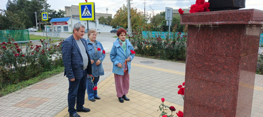 В митинге, посвященном дню рождения героя, участвовали члены Красноармейского «БОЕВОГО БРАТСТВА» Александр Суфрадзе, Тамара Шестак, Константин Лебедев и ветеран станицы Людмила Жилина.