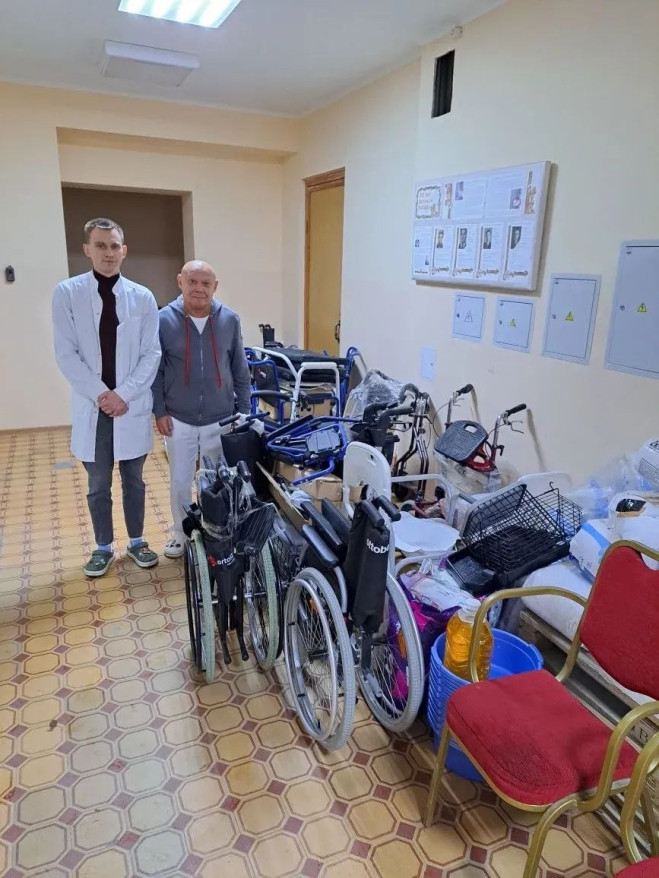 Вологодское отделение под руководством Игоря Сидорова, активисты группы “Вологодский ZOV”, куратор гуманитарного направления областного «БОЕВОГО БРАТСТВА» Наталья Титова доставили средства реабилитации (инвалидные коляски, ходунки, костыли, памперсы) и средства гигиены.