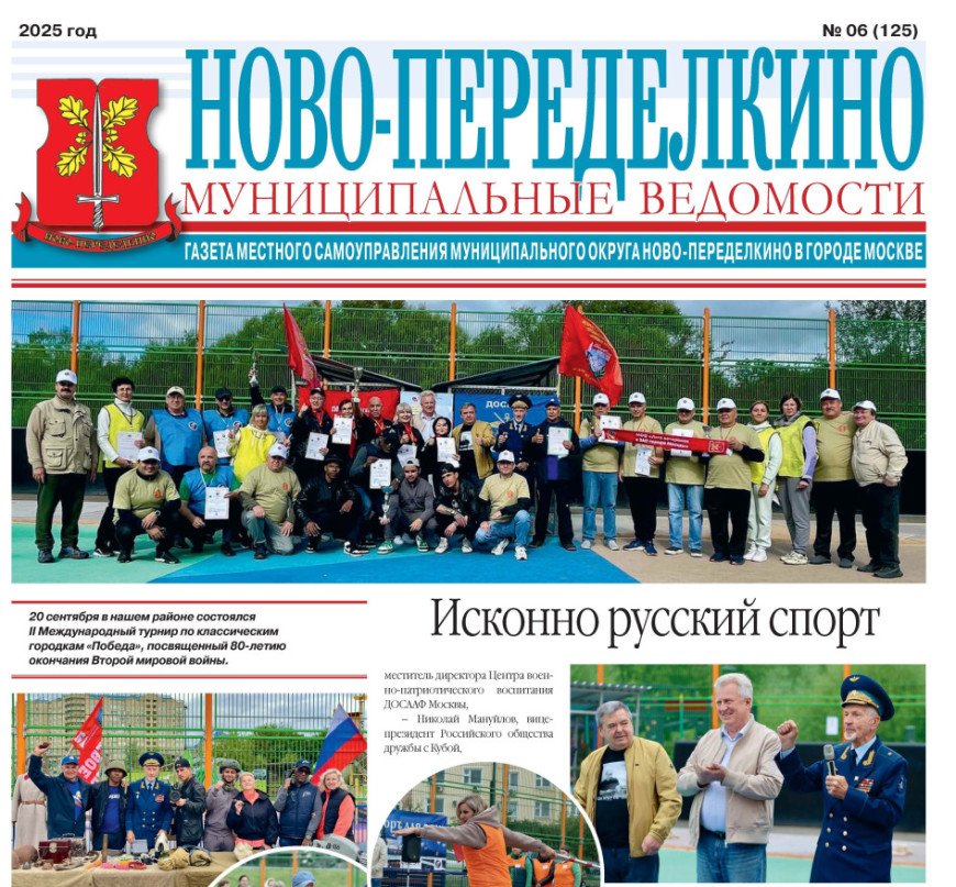 22 октября в Москве вышел свежий выпуск газеты местного самоуправления муниципального округа Ново-Переделкино «Муниципальные ведомости: Ново-Переделкино» про деятельность Московского отделения «БОЕВОГО БРАТСТВА».