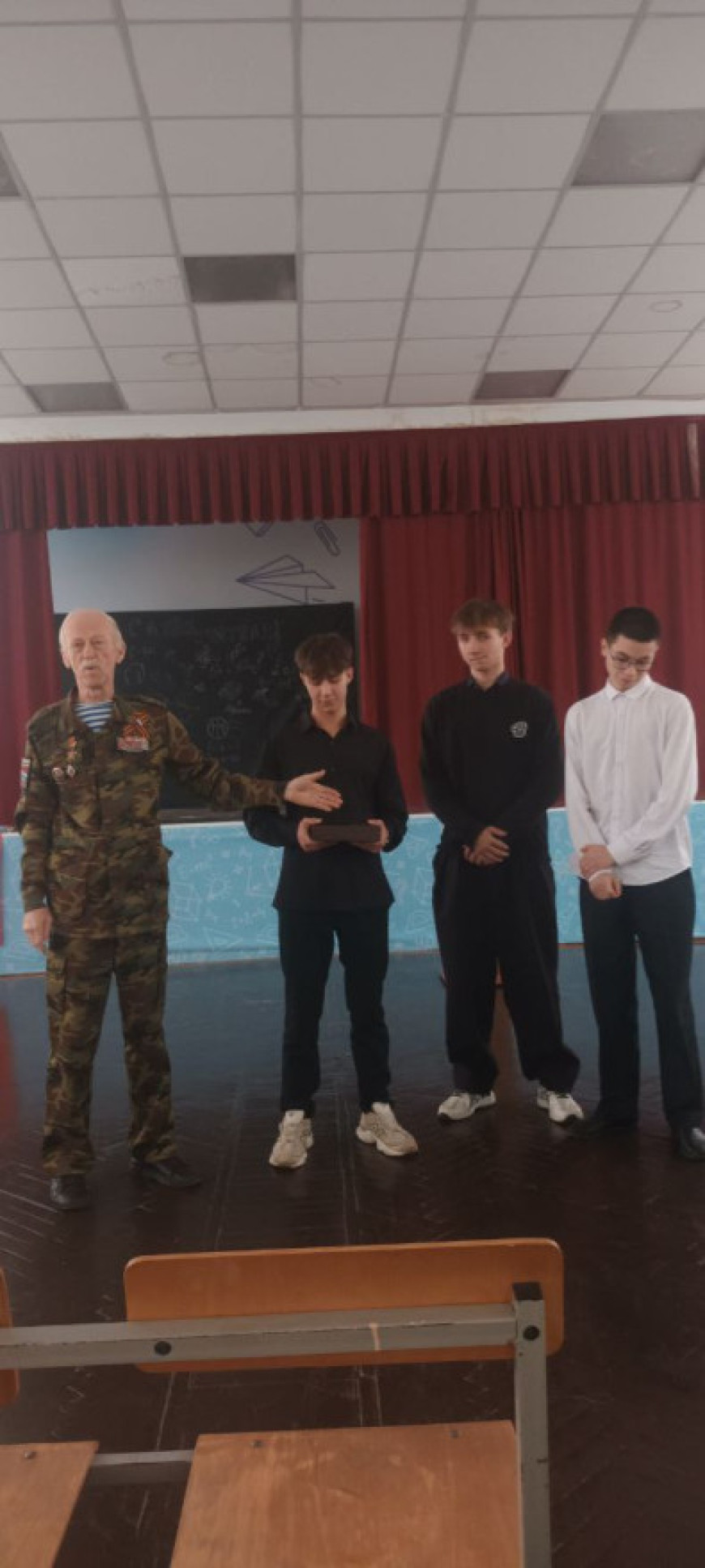 Урок был посвящен поддержке участников СВО. Денис Неверов поделился историями о героизме, стойкости и взаимовыручке, которые проявляют каждый день бойцы на передовой. Также была продемонстрирована выставка оружия и трофеев, привезенных из зоны проведения СВО.