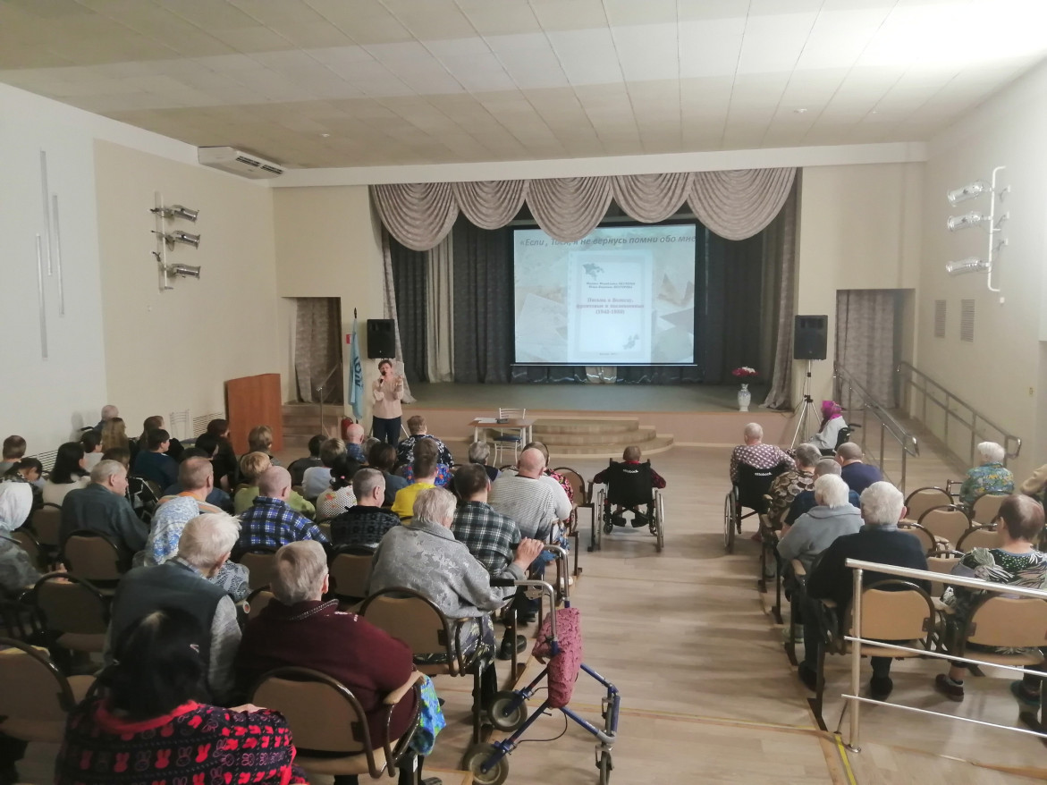 Главный библиотекарь областной библиотеки Ольга Питерякова на медиауроке «Если я не вернусь…» поведала жителям и персоналу дома-интерната трогательную историю любви двух молодых людей: девушки и юноши из обычной вологодской школы, которых разлучила война.