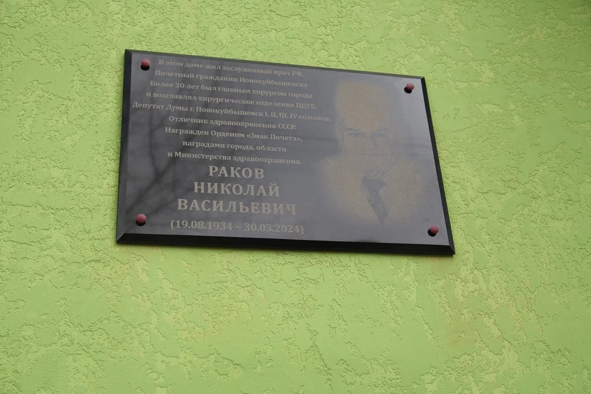 29 октября в Новокуйбышевске торжественно открыли мемориальную доску выдающемуся хирургу, почётному гражданину города Николаю Ракову.