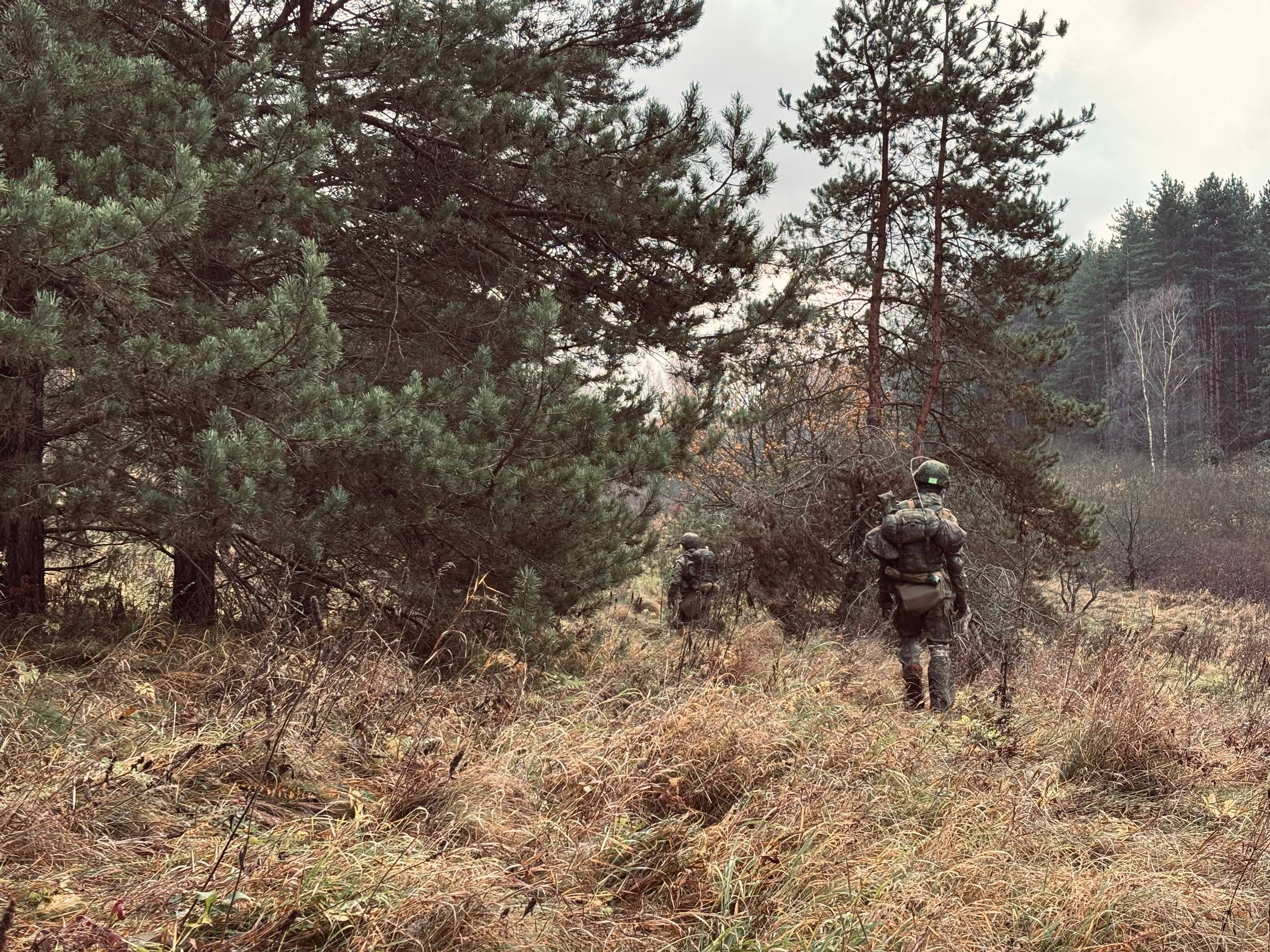 Учились рассредоточено двигаться боевым порядком по пересеченной местности, с формированием дозоров и ядра, тренировались пересекать дороги и отрабатывали управление подразделением с помощью условных жестов.