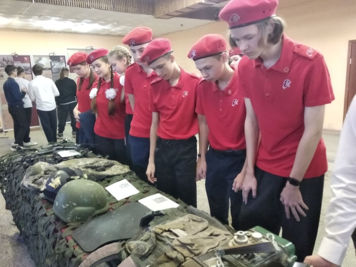 В фойе центра была организована передвижная выставка артефактов Специальной военной операции от Дома молодежи. Ребята получили возможность ознакомиться с современной экипировкой и оружием, квадрокоптерами, применяемыми на СВО.