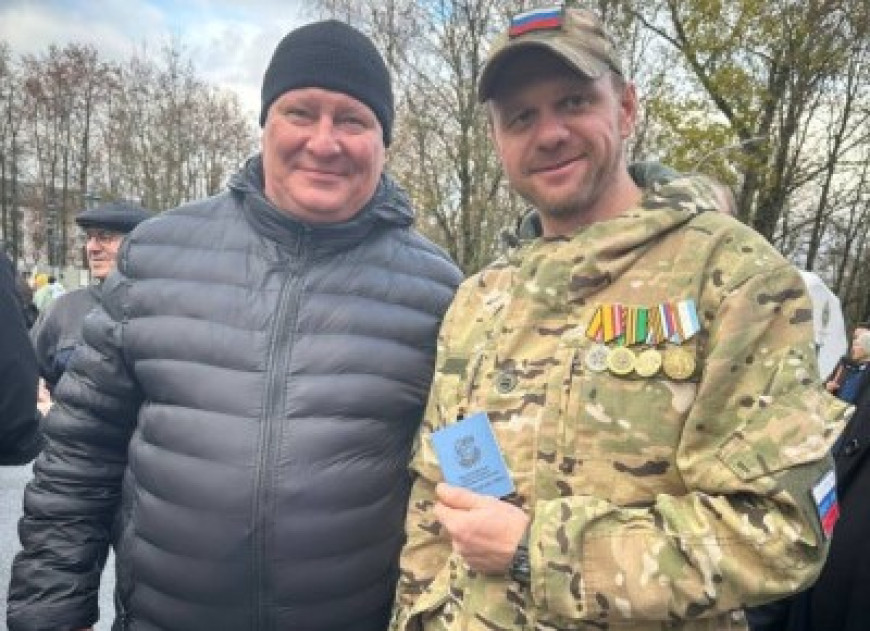 4 ноября в Великом Новгороде, в День народного единства, у стелы «Город воинской славы» руководитель Новгородского областного отделения «БОЕВОГО БРАТСТВА» Алексей Иванов в торжественной обстановке вручил членский билет организации «БОЕВОЕ БРАТСТВО», ветерану Специальной военной операции Антону Сухиненко.