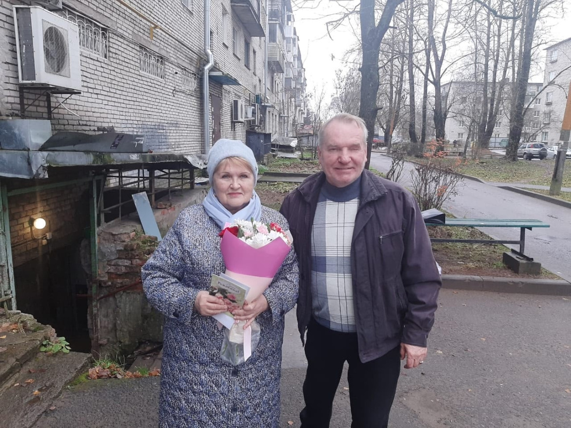 Члены Тихвинского «БОЕВОГО БРАТСТВА» Александр Землянский и председатель ветеранской организации «5,45» Александр Кирюшин пожелали им в день рождения здоровья и долголетия и передали подарки от Тихвинского местного отделения партии «Единая Россия».