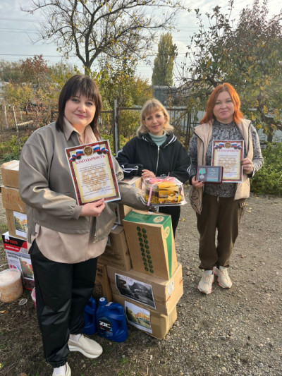 За вклад и содействие в укреплении обороноспособности Родины боец вручил благодарность группе от командования и личного состава войсковой части №75304 и медаль «За помощь фронту» Ирине Бардаковой.
