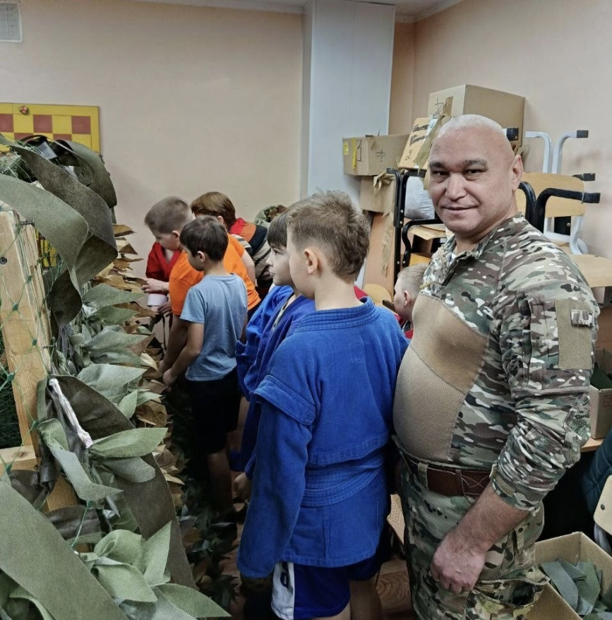 14 ноября в Мотовилихинском районе Перми член «БОЕВОГО БРАТСТВА», ветеран спецназа ГРУ, участник боевых действий на Северном Кавказе Ильмур Якупов и его воспитанники-самбисты помогли волонтерам плести маскировочные сети.