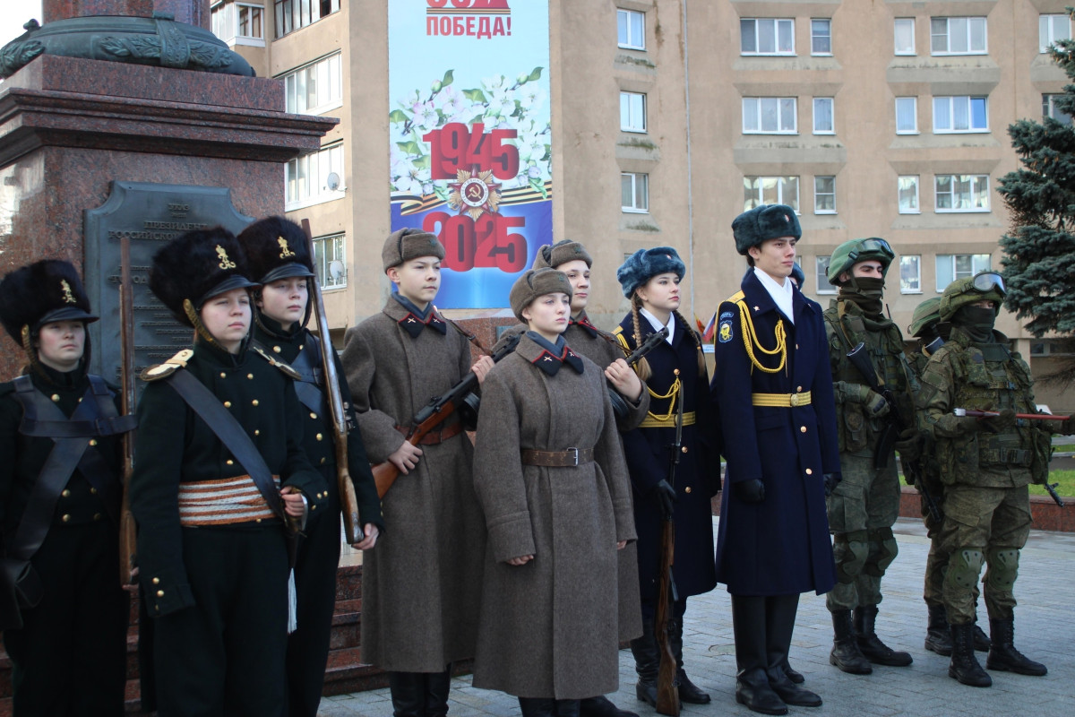 Затем патриоты заступили на Пост №1 к барельефам с изображением событий, в связи с которыми городу присвоено звание “Город воинской славы”.