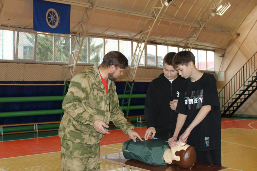 Ребята узнали, как уложить пострадавшего в устойчивое боковое положение, отработали на тренажёре непрямой массаж сердца и искусственную вентиляцию лёгких.
