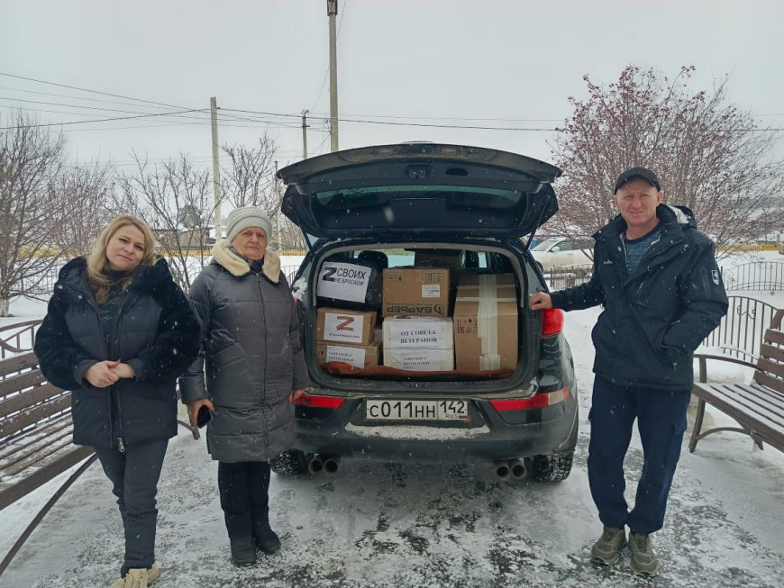 В составе груза продукты, медикаменты и вещи для бойцов СВО. Принял гуманитарную помощь руководитель отделения Евгений Тумашов и ветераны боевых действий.