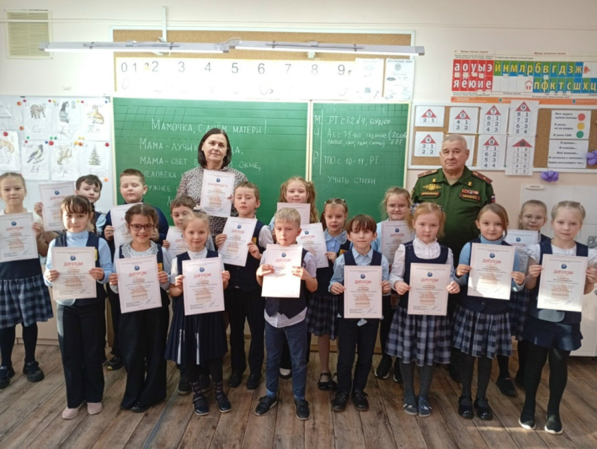 В завершение беседы ветеран вручил школьникам дипломы за участие в конкурсе творческих работ «Память сильнее времени» и рассказал детям, что солдаты и офицеры на передовой с особенным трепетом относятся к письмам и рисункам, хранят и перечитывают их.