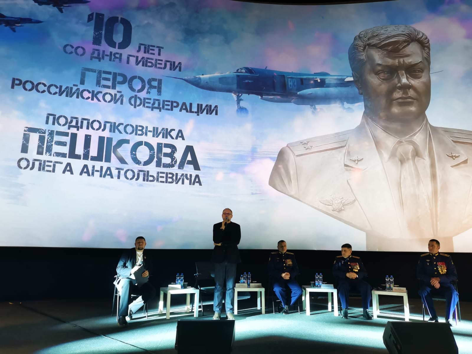 После торжественной церемонии состоялась программа в центральном кинотеатре Липецка, в которой приняли участия два почетных гостя: режиссер фильма «Небо» и пилот-напарник погибшего Олега Пешкова Константин Мурахтин — российский военный лётчик, майор, лучший штурман России (2014), кавалер ордена Мужества.