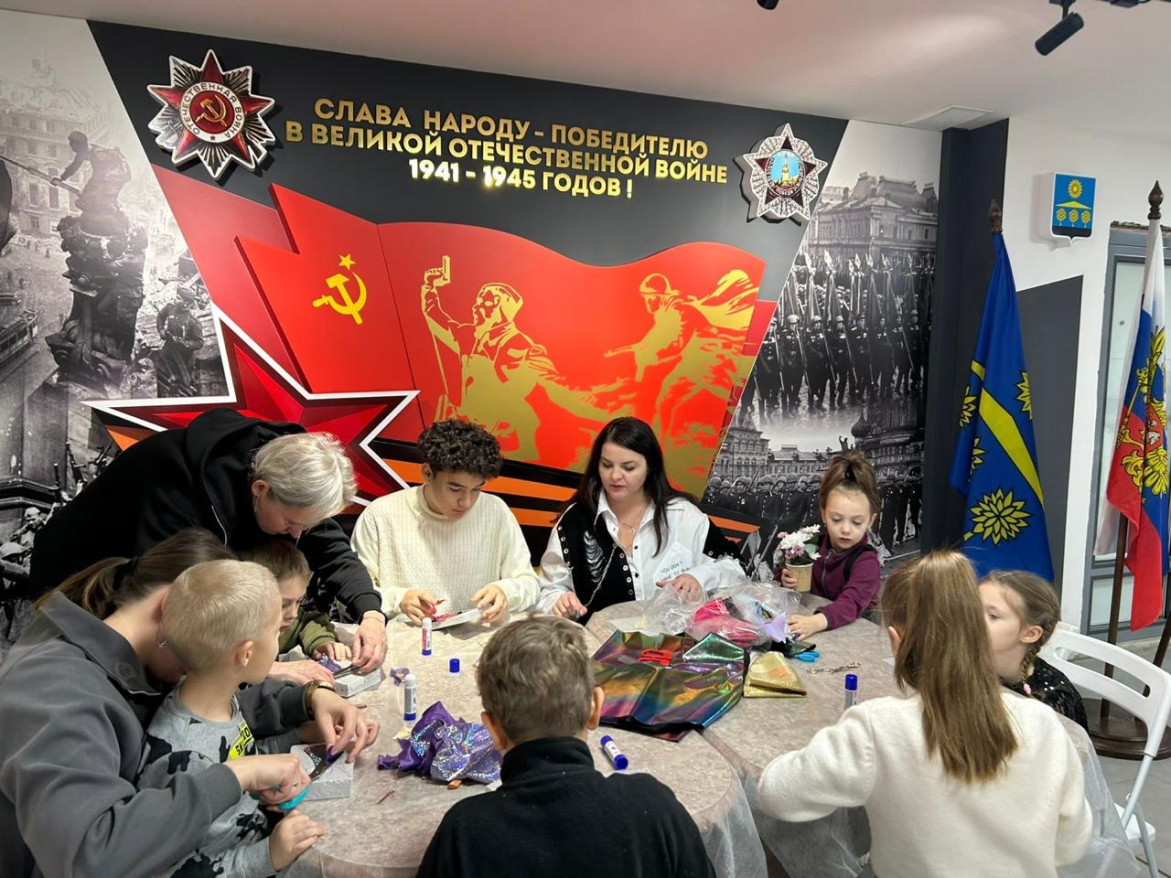 В Музее ратной славы Солнечногорья под руководством взрослых ребята собирали букеты, создавали яркие рисунки и мастерили удивительные поделки в технике кимекоми. Наставляли и помогали члены Солнечногорского отделения: Андрей Пименов, Алёна Пинарева, Оксана Громова, Вадим и Алина Тен, волонтёр «БОЕВОГО БРАТСТВА» Анна Горбунова и руководитель секции кимекоми центра «Тимоново» Рита Кузьменко.