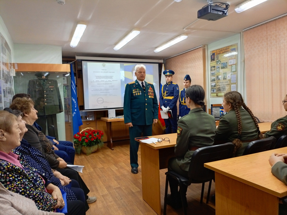 24 ноября на Посту №1 был организован урок мужества, посвящённый десятой годовщине подвига Героя России Олега Пешкова, погибшего при выполнении воинского долга в небе Сирии. Урок мужества провёл руководитель регионального отделения “БОЕВОГО БРАТСТВА” В. Сонин.