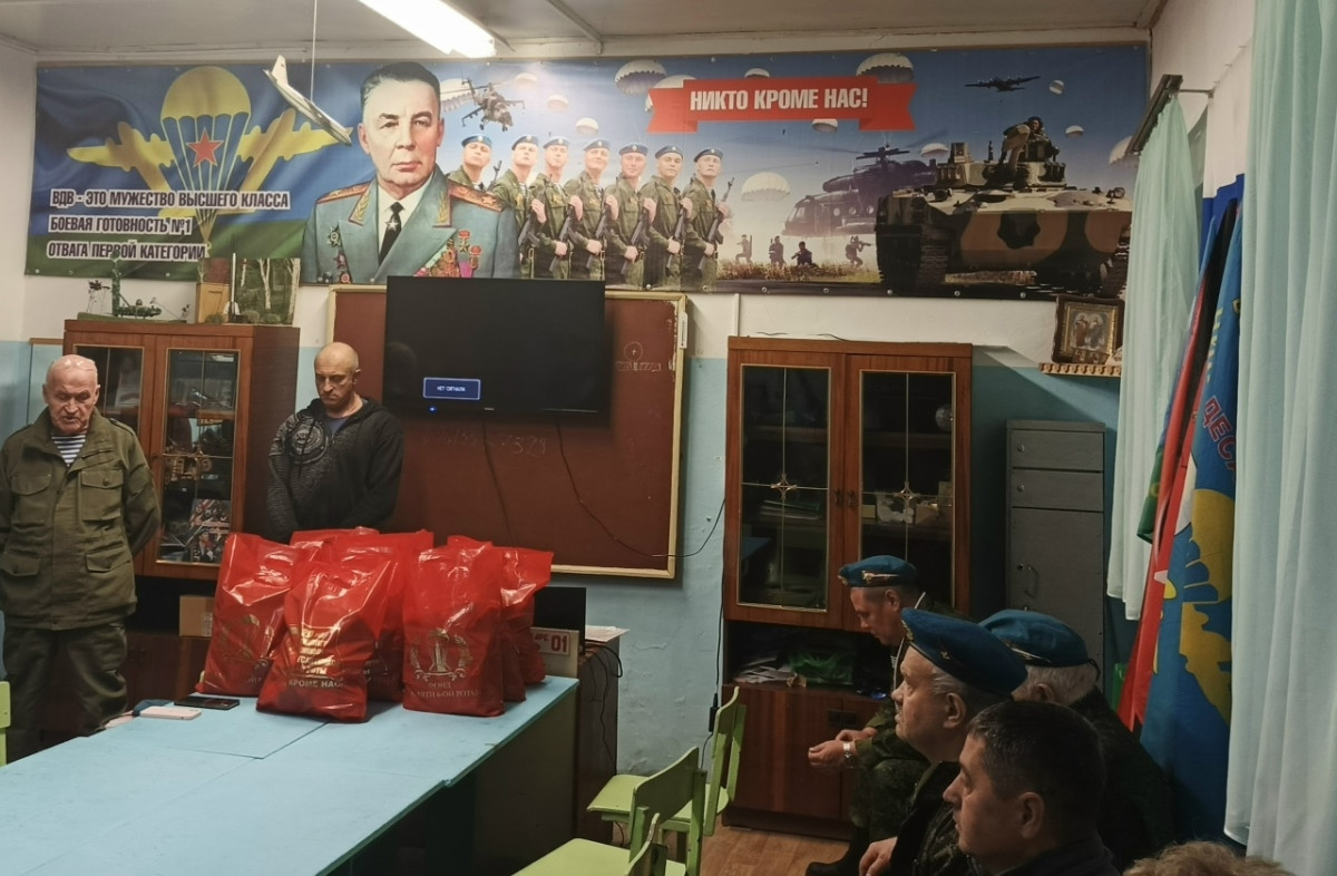 После церемонии прошло вручение продуктовых наборов ветеранам боевых действий, получившим инвалидность, и семьям погибших военнослужащих. Акция организована районным отделением «БОЕВОГО БРАТСТВА» и Фондом памяти 6-й парашютно-десантной роты 104-го полка ВДВ 76-й дивизии. В этом году было передано 11 продуктовых наборов