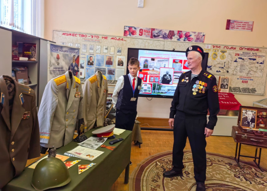 Ребята из актива школьного музея «Память» им. П.Д. Белозерова рассказали о целях и задачах СВО, о том, что в рядах бойцов есть близкие родственники учеников школы.