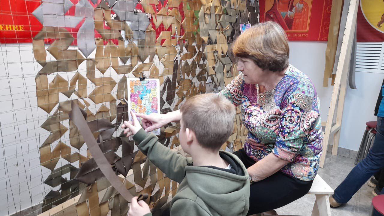 5 декабря член Щербинского районного отделения «БОЕВОГО БРАТСТВА» Татьяна Чиж совместно с коллективом волонтерской группы “Мастерицы Щербинки будем жить” организовала мастер-класс по плетению маскировочных сетей для учеников 6-7 классов школы №2117 района Щербинки.